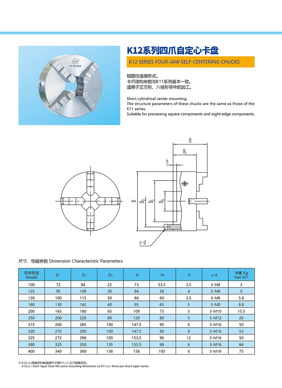 K11系列短錐三爪自定心卡盤