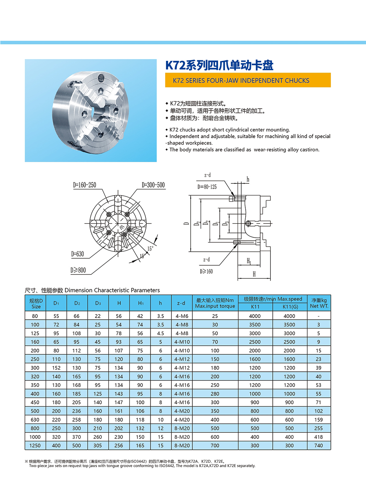 K72系列四爪單動卡盤